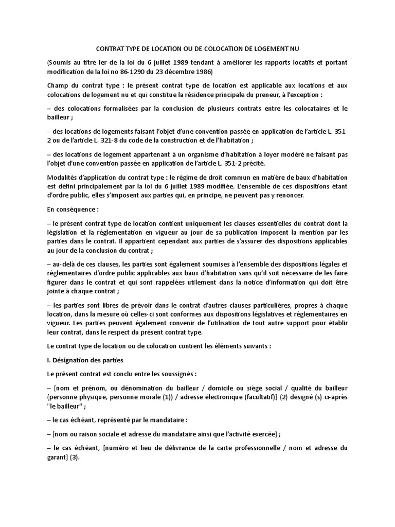 Article 6 De La Loi Du 6 Juillet 89. Directe Location Bail Habitation Principale 2016