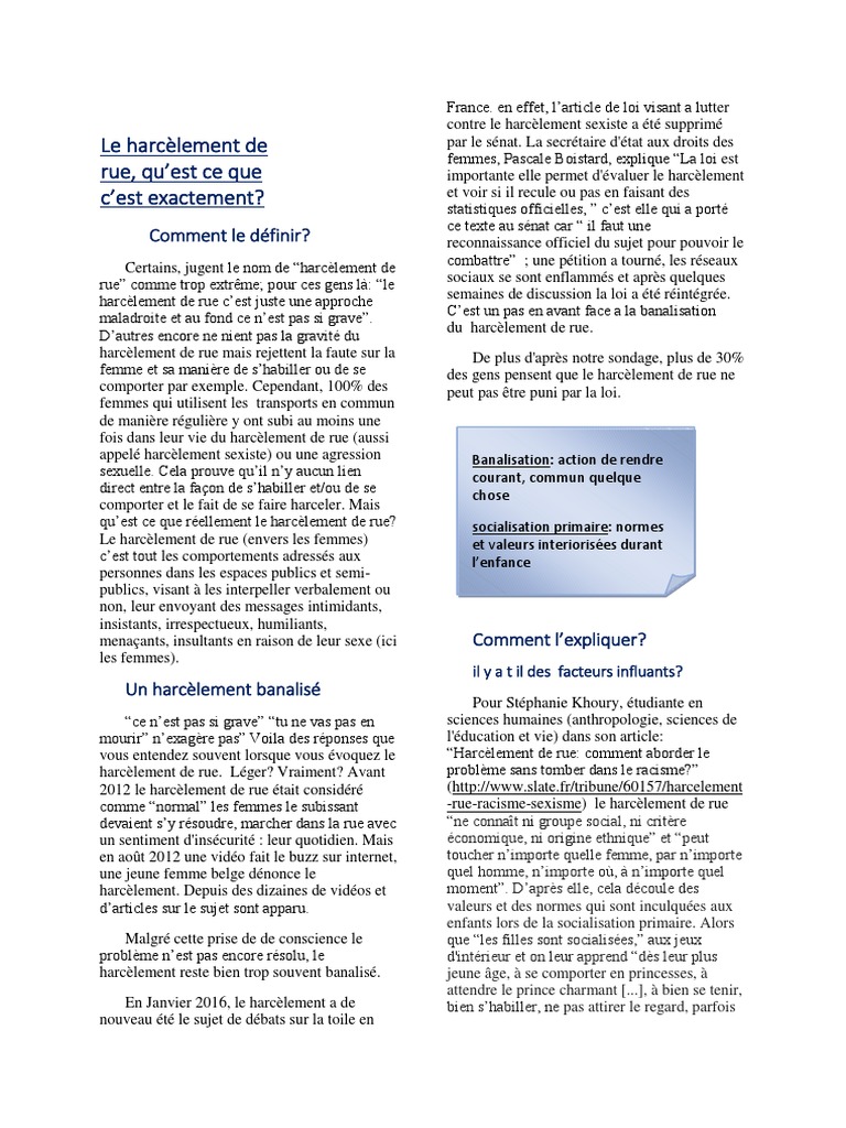 La source : fr.scribd.com Grâce Au Buzz Sur Les Réseaux Le Harcèlement De Rue Sera