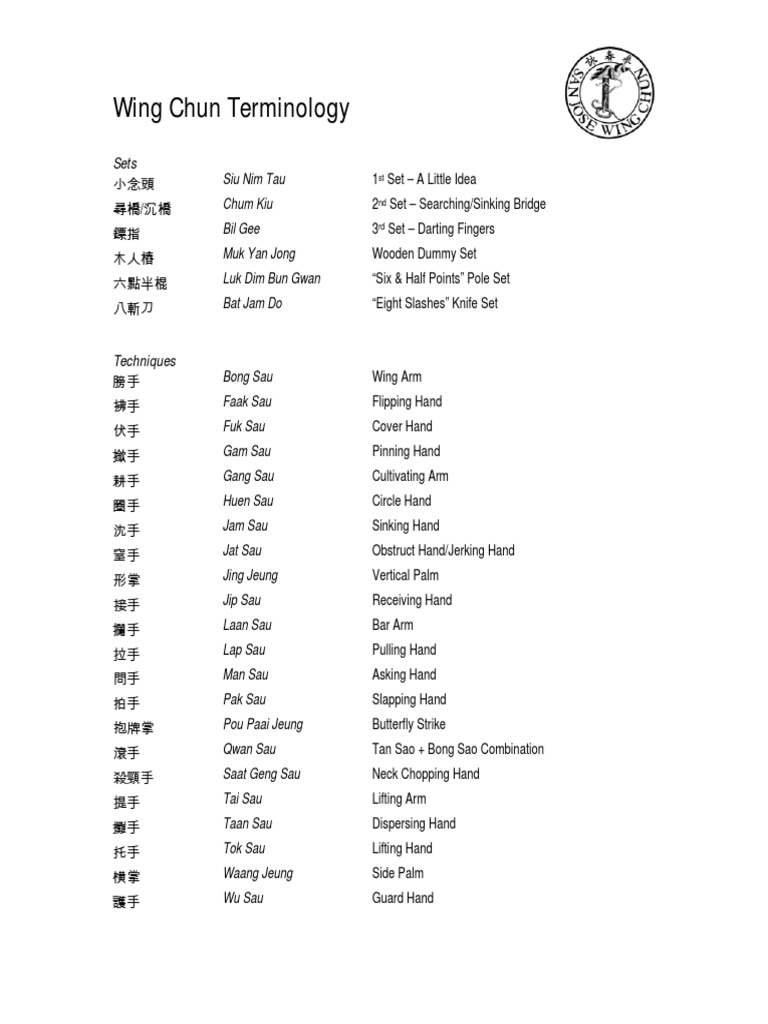 La source : fr.scribd.com Wing Chun Terminologie East Asian Martial Arts Chinese