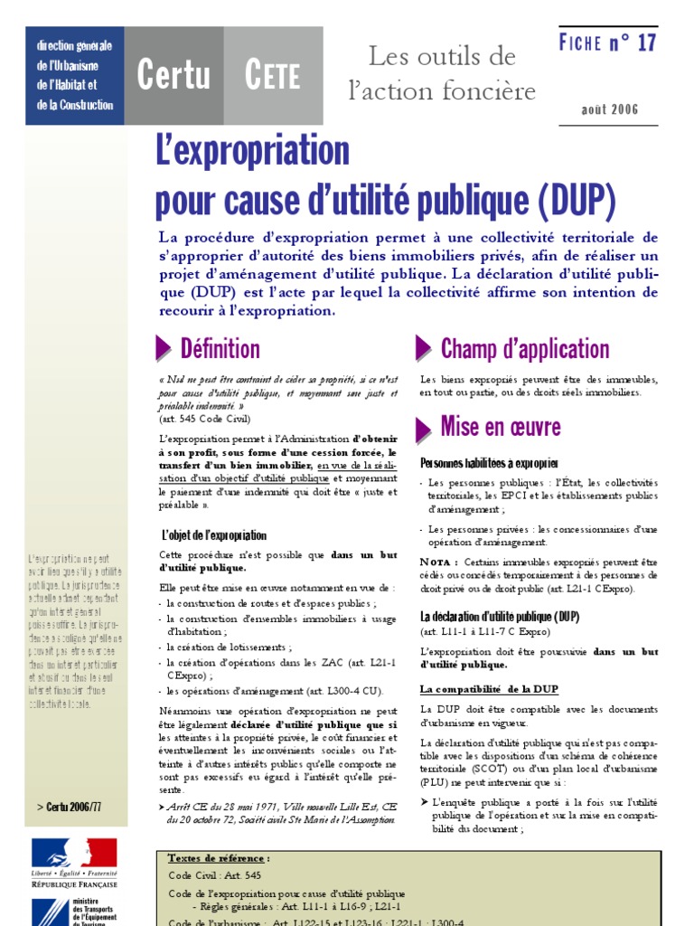 La source : lemoniteur.fr Expropriation Pour Cause Dutilité Publique Guide Pour L