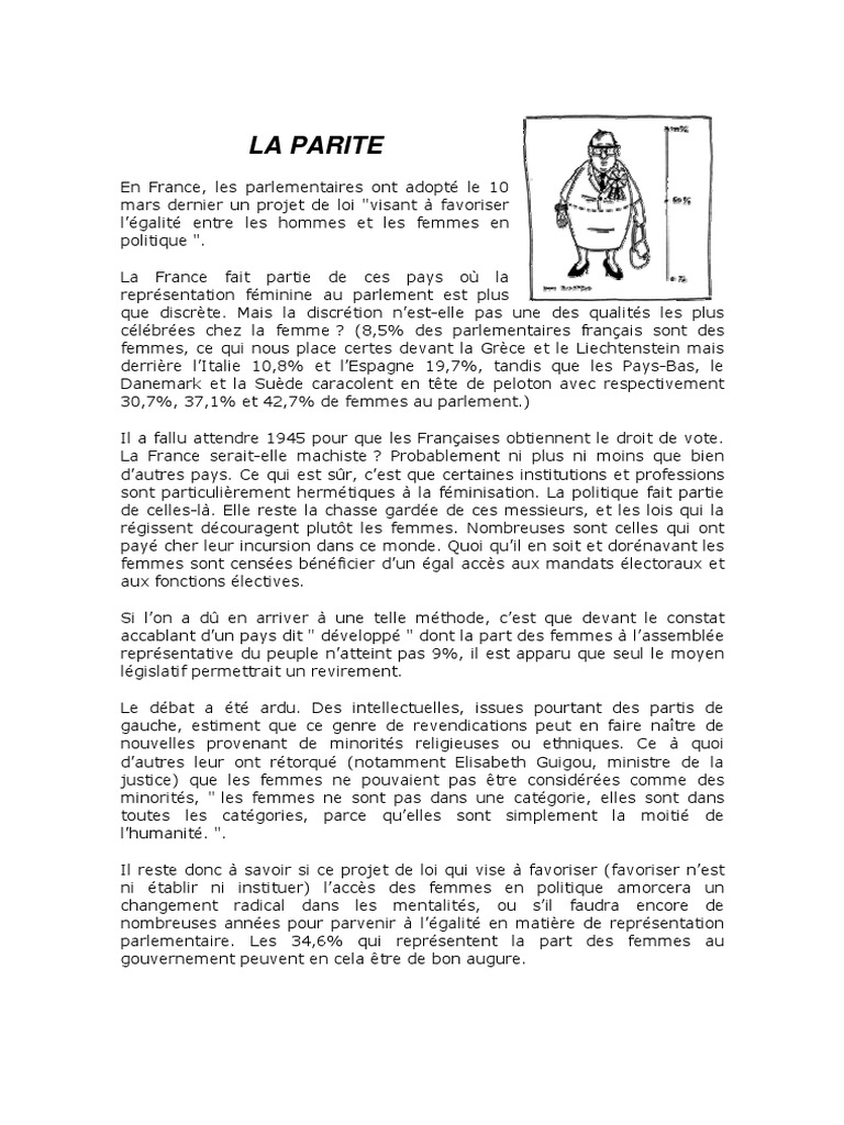 Loi De Parité Entre Les Hommes Et Les Femmes. Parité Hommes Femmes Enfin Une Réalité En Politique