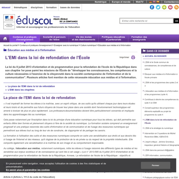 Loi Pour La Refondation De L école De La République. éducation Aux Médias Et à Linformation Lemi Dans La Loi