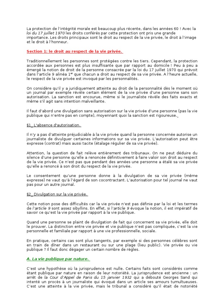 La source : scribd.com Droit à La Vie Privée Du Salarié En Entreprise Droit Travail