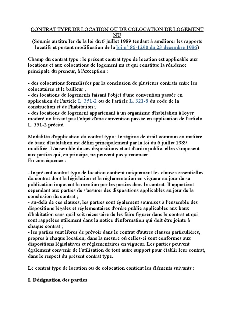 Contrat De Location Loi N 89462 Du 6 Juillet 1989. Contrat De Location Gratuit Bail Conforme Loi Alurelan 2020