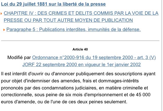 Loi du 29 juillet 1881 sur la liberté de la presse. Loi du 29 juillet 1881 sur la liberté de la presse. Loi du 29 juillet 1881 sur la liberté de la presse article 38 ter masquer le panneau de navigation article précédent article suivant imprimer. Loi du 29 juillet 1881 sur la liberté de la presse article 24 bis masquer le panneau de navigation article précédent article suivant imprimer. Toute publication de presse doit avoir un directeur de la publication. Des crimes et delits commis par la voie de la presse ou par tout autre moyen de publication. Des crimes et delits commis par la voie de la presse ou par tout autre moyen de publication. Loi du 29 juillet 1881 sur la liberté de la presse. La loi du 29 juillet 1881 sarticule autour de quatre grandes spécificitésnbsp. Loi du 29 juillet 1881 sur la liberté de la presse article 29 masquer le panneau de navigation article précédent article suivant imprimer. Loi du 29 juillet 1881 sur la liberté de la presse. Des crimes et delits commis par la voie de la presse ou par tout autre moyen de publication. Loi du 29 juillet 1881 sur la liberté de la presse article 32 masquer le panneau de navigation article précédent article suivant imprimer. Des crimes et delits commis par la voie de la presse ou par tout autre moyen de publication. Lorsquune personne physique est propriétaire ou locataire gérant dune entreprise éditrice au sens de la loi n 86 897 du 1er août 1986 portant réforme du régime juridique de la presse ou en détient la majorité du capital ou des droits de vote cette personne est directeur de la publication. Loi du 29 juillet 1881 sur la liberté de la presse. Un régime administratif de la presse écrite exempt de tout contrôle préalable comportant une obligation de déclaration auprès du procureur de la république et des formalités de dépôt des publications périodiques.