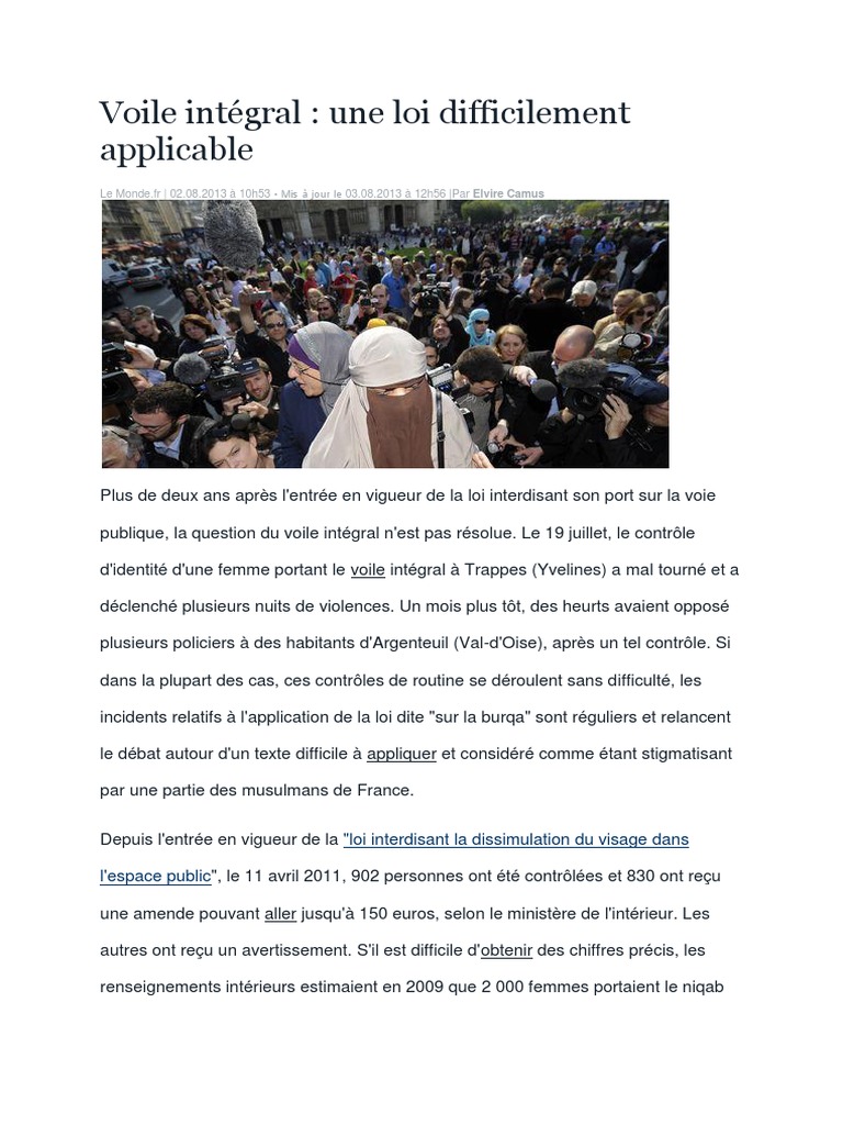 La source : fr.scribd.com Des Politiques Défendent La Loi Interdisant La Burqa