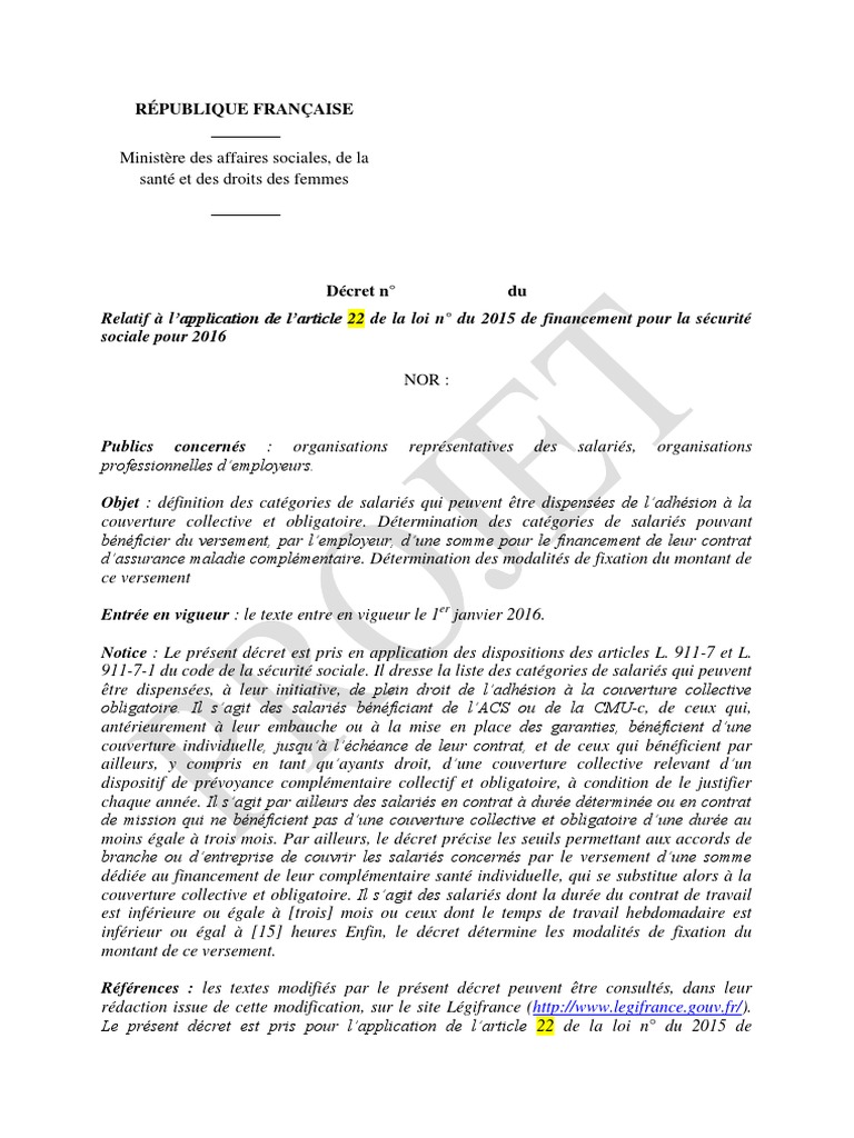 La source : pnogues.fr Projet Décret Article 34 Plfss 2016