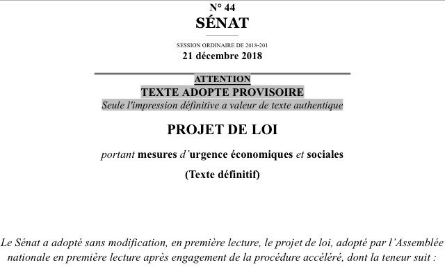 La source : senat.fr Gilets Jaunes Les Députés Ont Adopté Les Mesures D
