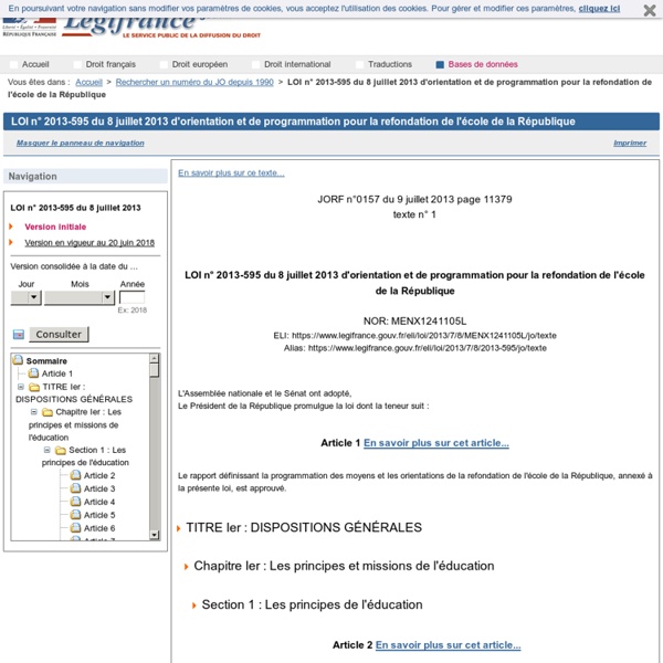 Loi De Refondation De L école De La République. Loi N 2013 595 Du 8 Juillet 2013 Dorientation Et De